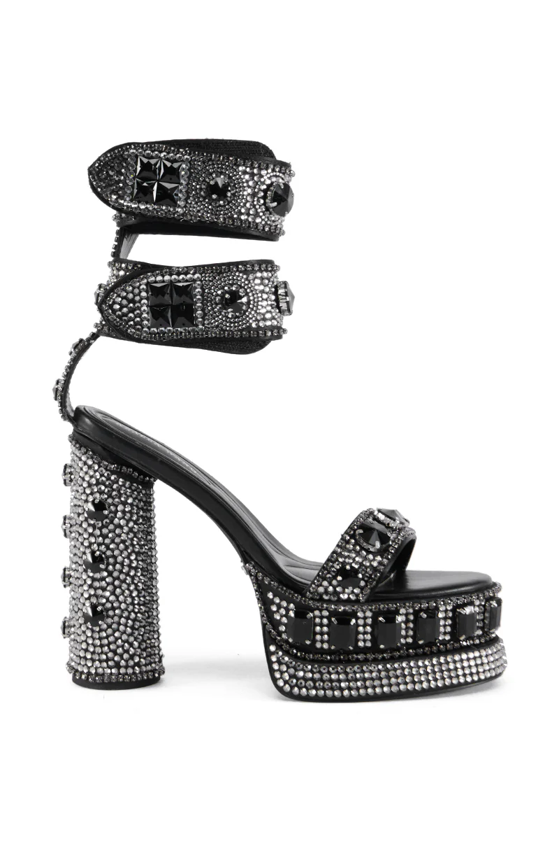 AZALEA WANG BAYOU BLACK RHINESTONE PLATFORM SANDAL