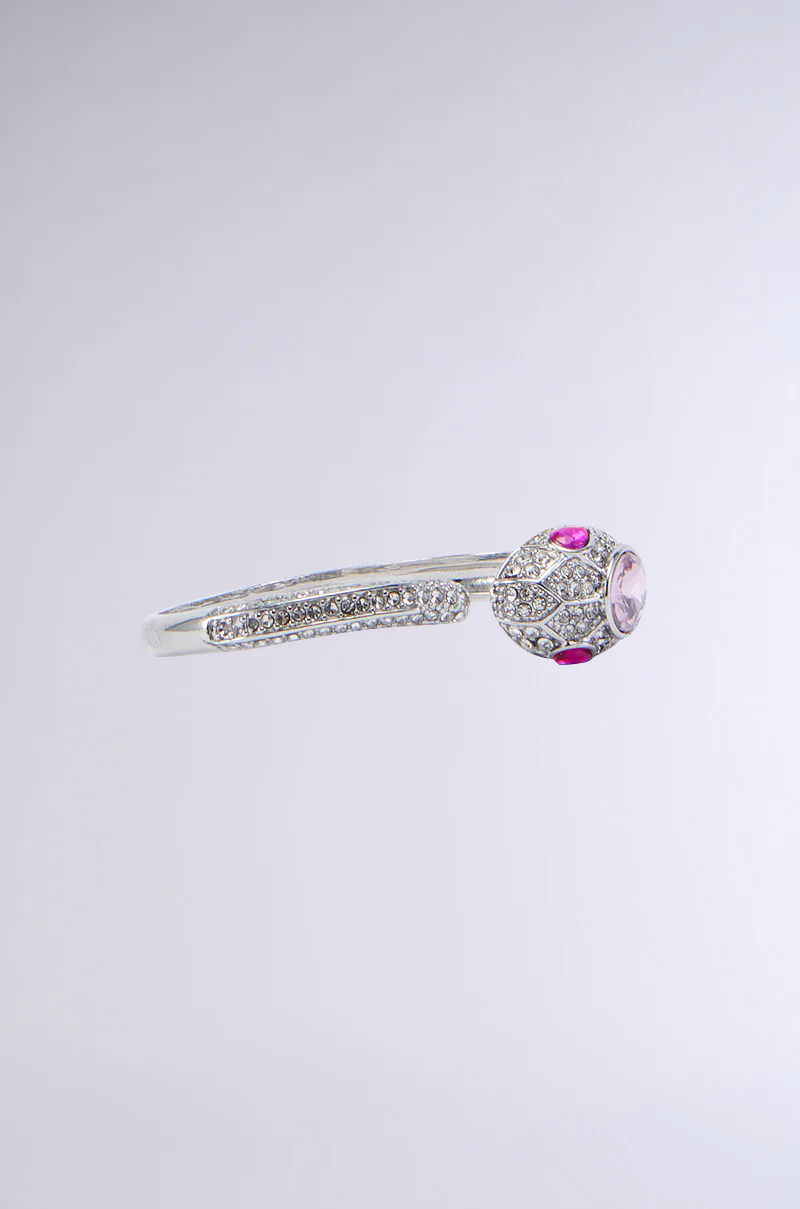 Slither your way into everyone’s hearts with The AKIRA Label Nikki Snake Bracelet. This glam accessory is crafted from a faux silver metal construction and features a wraparound cuff silhouette in the shape of the snake, rhinestone embellishments with gemstone eye detailing, and a flexible one-size-fits-all design.