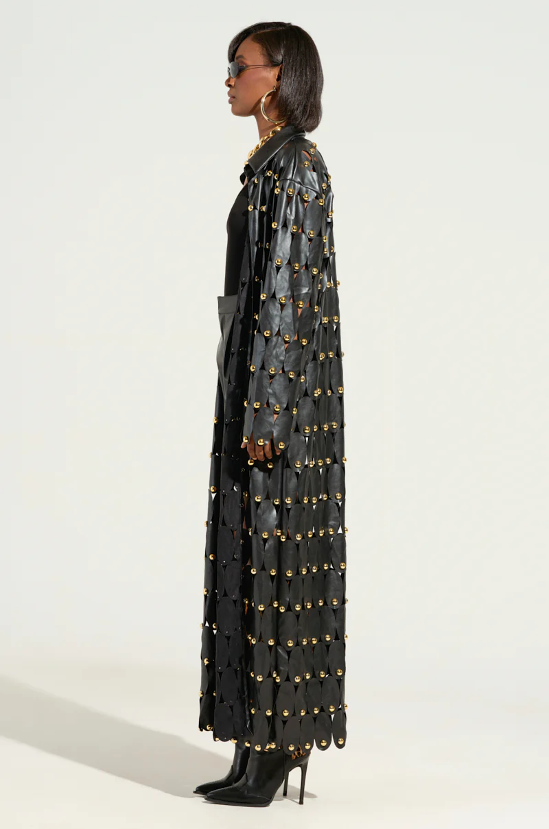 THE SNEAK PEEK STUDDED PU LONG CARDIGAN IN BLACK